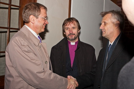 Рига, 26 декабря, портал цкп. Генеральный секретарь Всемирной лютеранской федерации (ВЛФ) Мартин Юнге, который в эти дни по приглашению архиепископа Латвийской Евангелическо-Лютеранской Церкви (ЛЕЛЦ) Яниса Ванагса находится с официальным визитом в Латвии, поблагодарил Рижскую думу за помощь в реставрации Домского собора и вручил вице-мэру Риги Андрису Америксу благодарственную грамоту.
