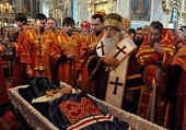 Затем гроб был перевезен в Петропавловский кафедральный собор г. Гомеля и установлен в центре храма. По окончании панихиды, которую совершил епископ Леонид в сослужении духовенства собора, началось прощание с владыкой.