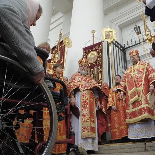 В жизни молодой женщины несколько лет назад произошла трагедия – после продолжительного заболевания она потеряла обе ноги. Однако это не сломило ее, Елена пришла к вере и стала искать возможности продолжать активную жизнь. Она приобрела небольшой автомобиль, и, оборудовав его специальными приспособлениями, ездила на богослужения в Софийский собор, а летом – по монастырям Ленинградской области.