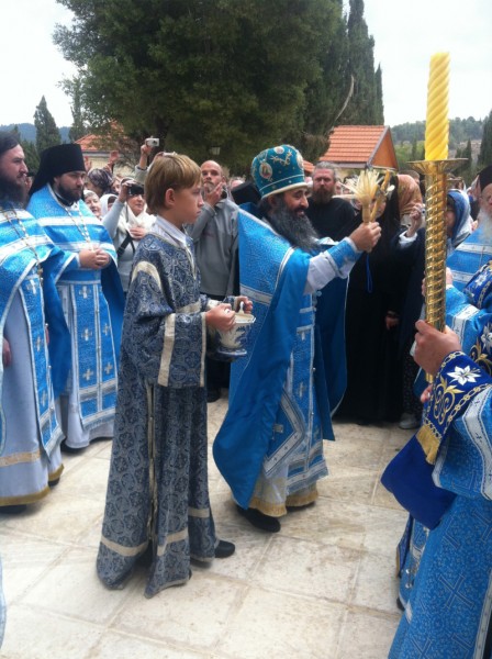 Ваня помогает на молебне в Горненском монастыре. Служит духовник Горненского монастыря протоиерей Виктор Мноян