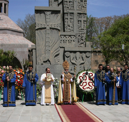 После посещения Цицернакаберда в кафедральном соборе монастырского комплекса Эчмиадзин, а также во всех армянских храмах в разных уголках мира, прошла Святая Литургия в память о жертвах геноцида в Османской Турции. В тот же день в Эчмиадзине у Хачкара в память о жертвах геноцида было совершено заупокойное богослужение которое возглавил Католикос всех армян в присутствии папского нунция в Армении и Грузии архиепископа Марека Солчинского и предстоятеля Армянской Католической Церкви в Армении и Восточной Европе архиепископа Рафаэля Минасяна.
